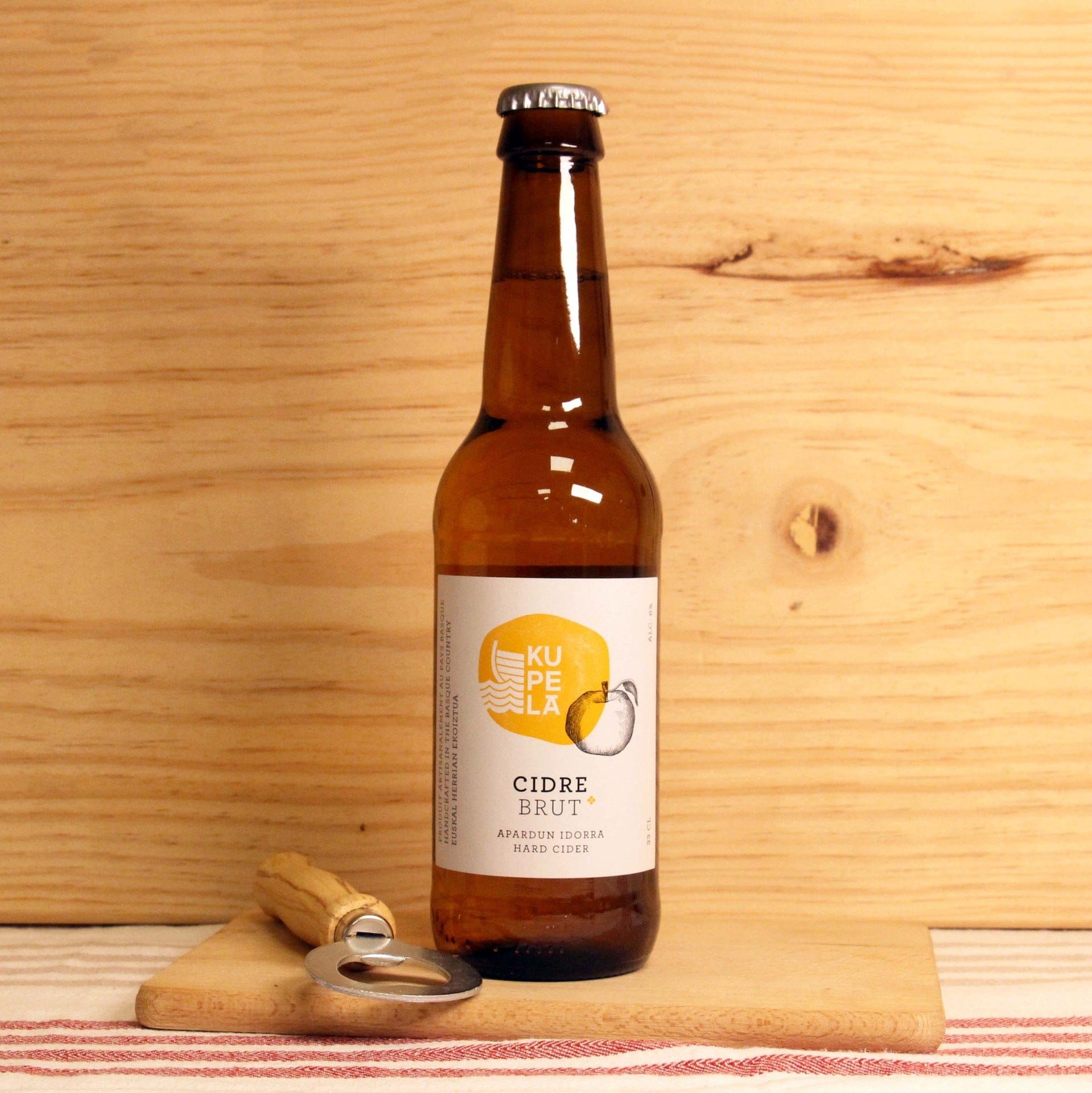 Inspiré des ciders anglosaxons mais jamais sans trahir son identité Basque, ce cidre brut vous offre un parfait équilibre entre les pommes 100% fraiches des vergers et l'acidité propre aux cidres basques