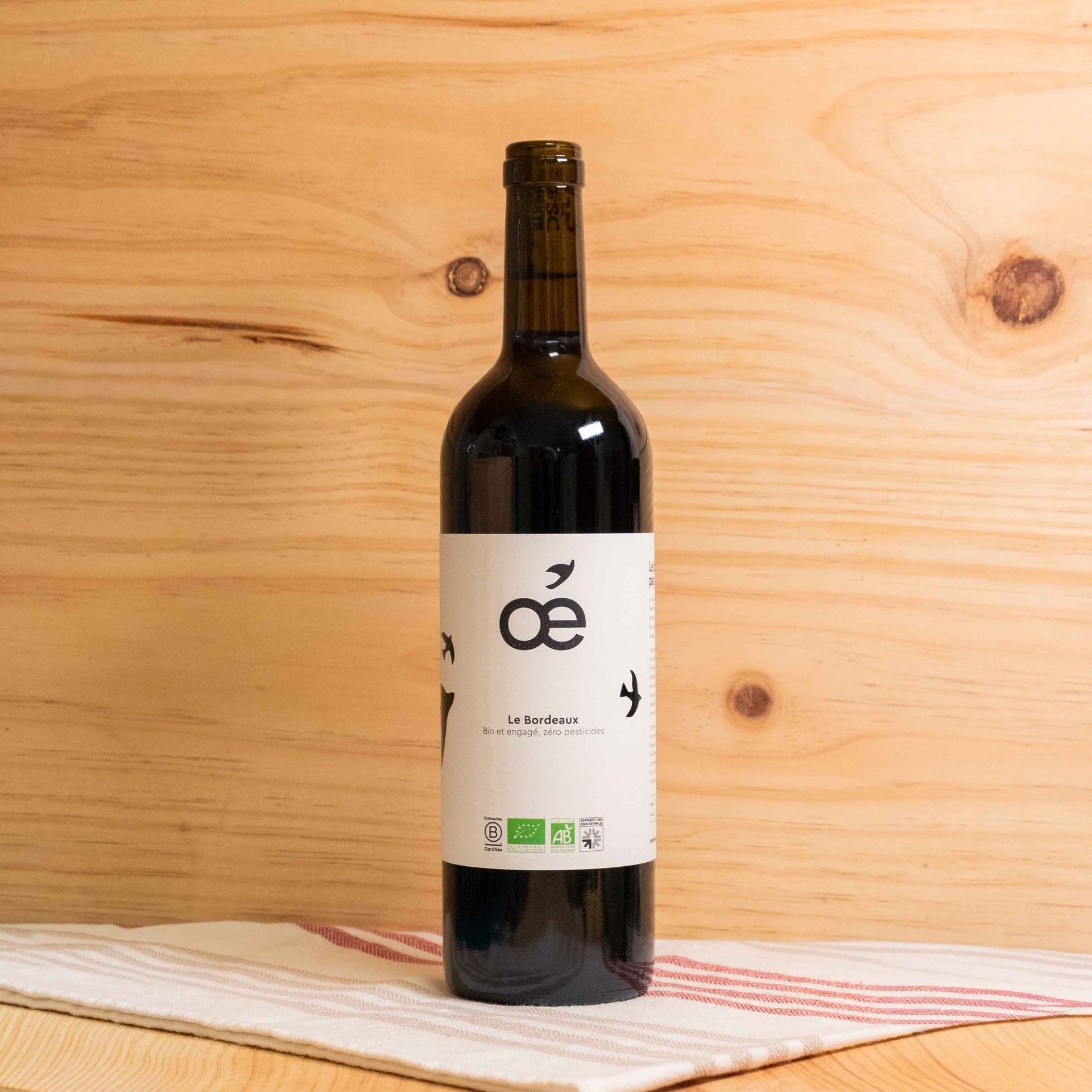 Certifiée B Corp, Oé est une jeune entreprise Lyonnaise qui œuvre pour le bien par le bon! Les vins Oé sont le fruit d’une étroite collaboration avec des vignerons bio mettant la biodiversité au profit de leur vigne pour produire des vins sans pesticides. En plus du label AB, les vins Oé sont analysés par un laboratoire indépendant sur plus de 400 molécules afin de garantir une composition exempte de pesticides. A travers son programme pour la Biodiversité, Oé travaille avec ses vignerons partenaires à la dépollution des sols ainsi qu’à la réintroduction d’oiseaux dans les vignes. Pour la commercialisation, Oé a fait le choix de bouteilles sans capsule superflue, avec un bouchon en liège naturel certifié FSC, une étiquette en papier recyclé. Tous les emballages utilisés lors du transport sont minimisés, allégés, recyclables et recyclés au maximum.