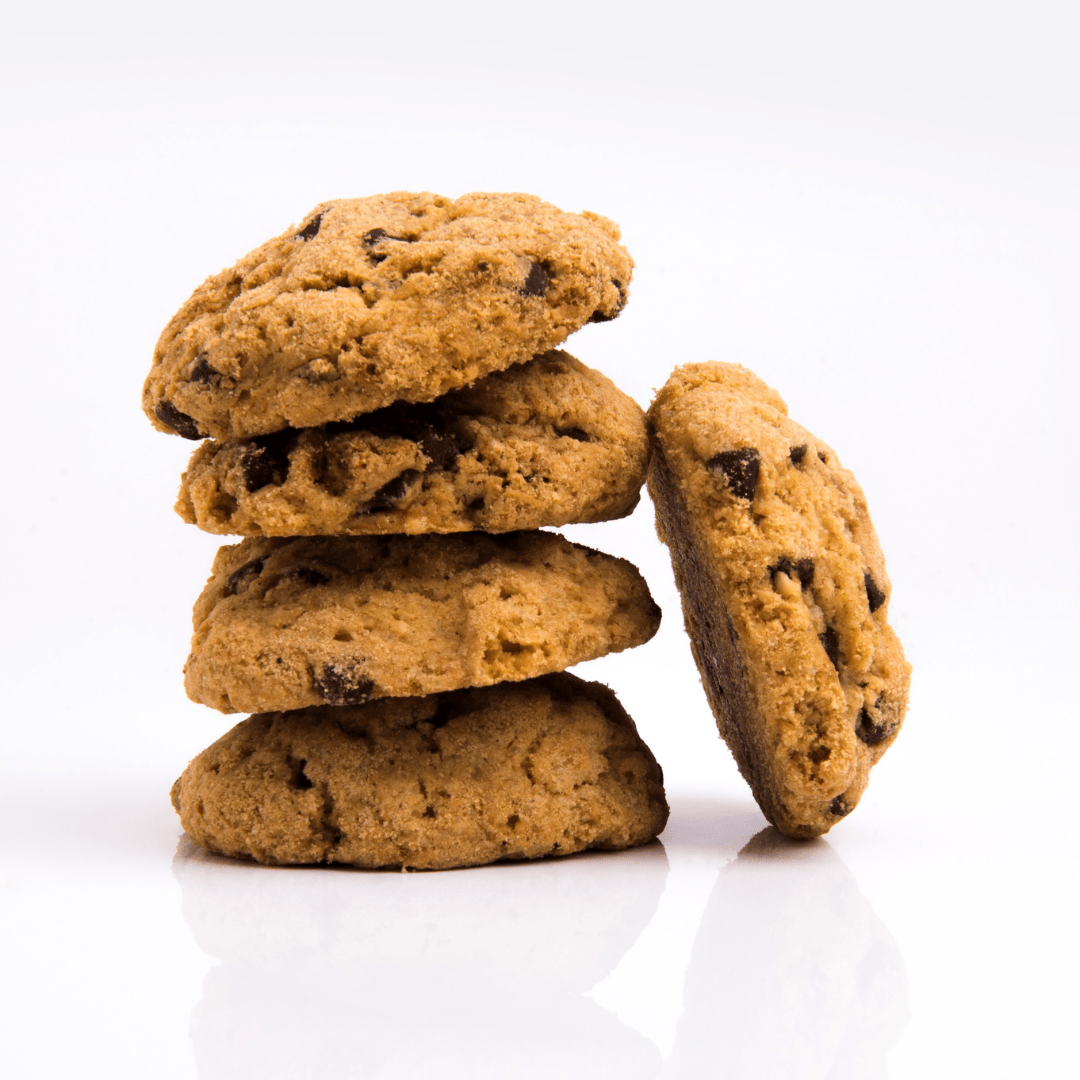 Farine de blé*, sucre de canne* contrôlé Équitable (20%), beurre* (16%), pépites de chocolat noir* contrôlé Équitable (16%) (pâte de cacao*, sucre*, beurre de cacao*, vanille en poudre*), pépites de chocolat blanc* contrôlé Équitable (13%) (sucre de canne*, beurre de cacao*, poudre de lait entier*, lécithine de tournesol*, extrait de vanille*), oeufs*, bicarbonate de soude, sel.